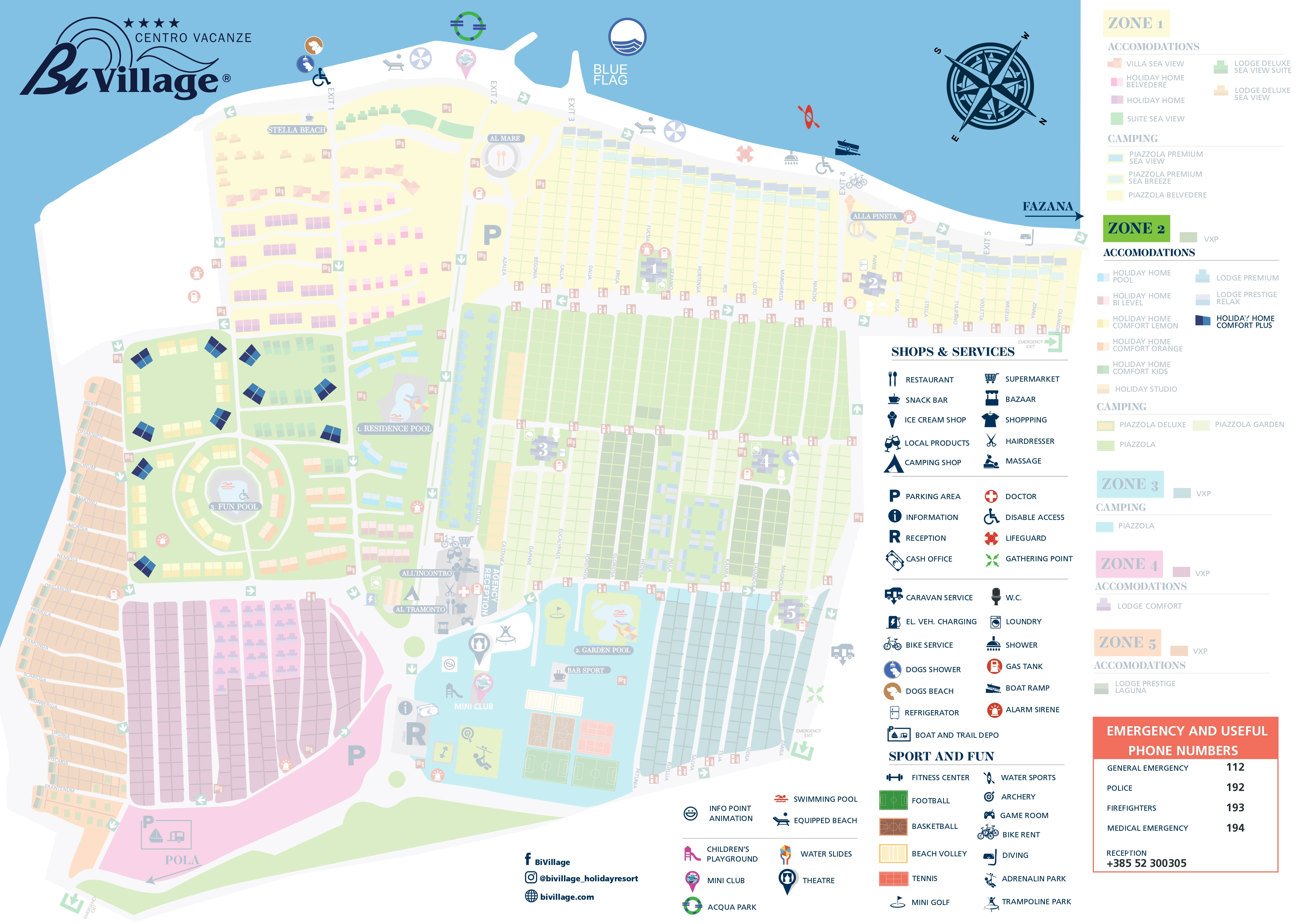 We spent a week on this campsite with our 6-year-old daughter and our dog (Golden retriever). We rented a mobile home. We found it welcoming and clean. The campsite is also clean and well organised with a super market where you can find everything. The swimming pools are large and quite equipped, the sea is fantastic and the walk to Fažana is very pleasant. We did not make much use of the organised activities, but during the few contacts we had, everyone was very friendly. We always ate at the restaurant “Al mare”, good value for money. A scooter can be useful for children to move around.