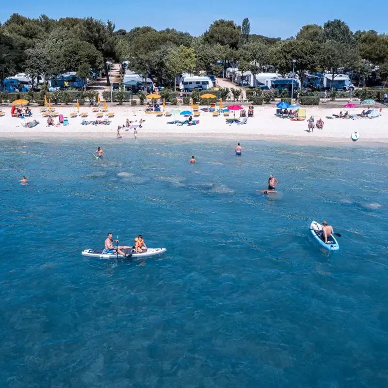 Bardzo atrakcyjny kemping z mnóstwem udogodnień i wszelkiego rodzaju rozrywką dla młodych i starszych. Animacja bardzo aktywna, ale niezbyt nachalna. Przestronne, zacienione stanowiska, zawsze czyste toalety! Wąska żwirowa plaża z możliwością wypożyczenia parasoli i leżaków lub pozostania w cieniu sosen. Doskonała lokalizacja dzięki przyjemnemu spacerowi o długości 1 km, wzdłuż którego znajduje się kilka barów, można dotrzeć do centrum Fažany, a przed plażą można zobaczyć archipelag Brijuni, który można odwiedzić. Spędziliśmy piękny tydzień! Gratulacje